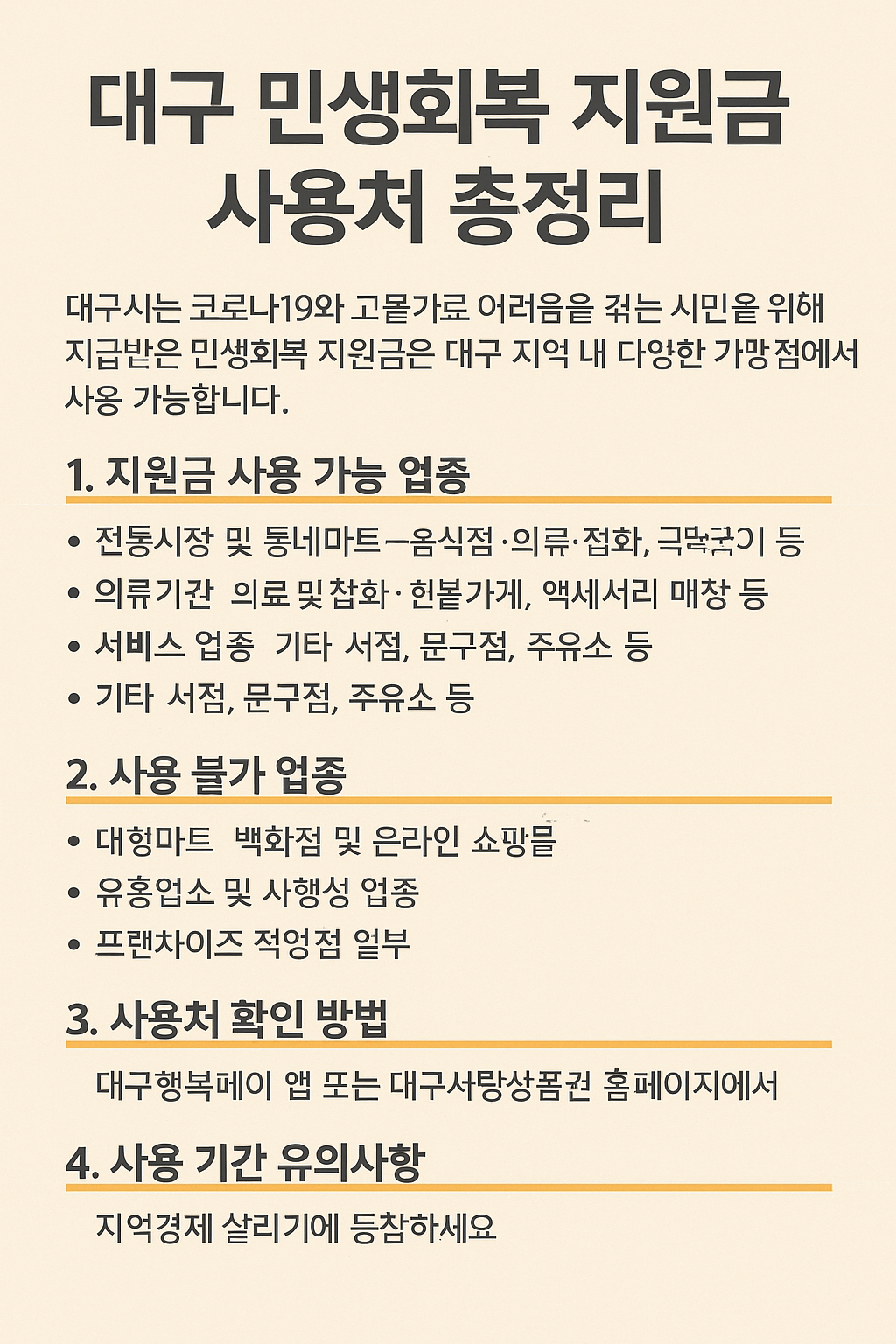 대구 민생회복 지원금 사용처 총정리